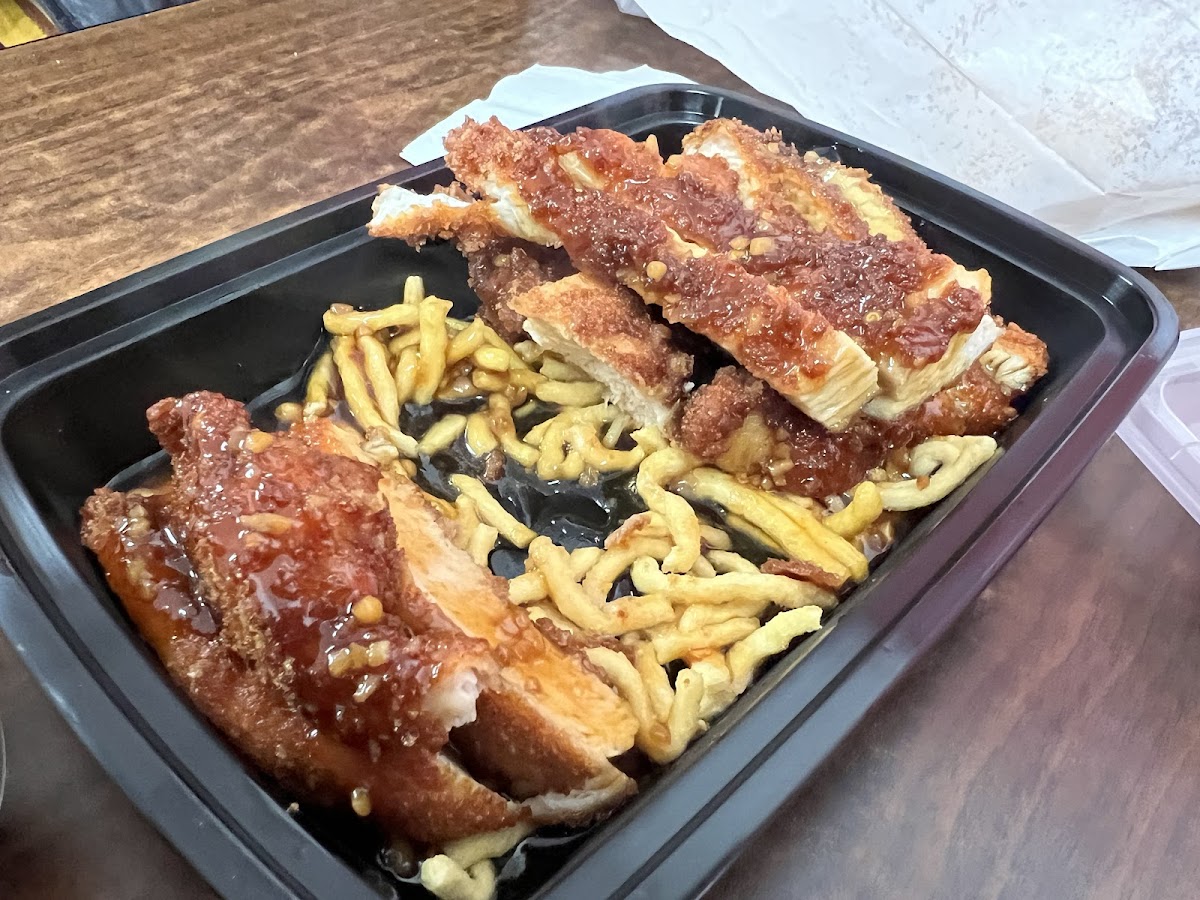 - Lo Mein: Soft noodles tossed with your choice of chicken, roast pork, shrimp, beef, or a delicious combination of them all.